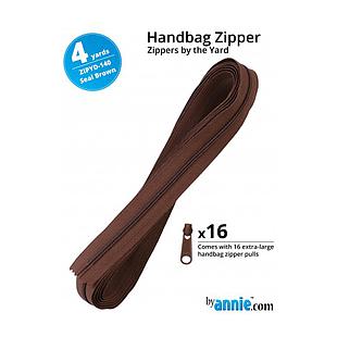 ZIPYD-140-SEAL BROWN, Zippers Seal Brown , 4 yards (3,6 meter) 16 extra large zipper pulls ByAnnie
