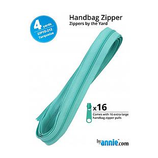 ZIPYD-212-TURQUOISE, Zippers Turquoise, 4 yards (3,6 meter) 16 extra large zipper pulls ByAnnie