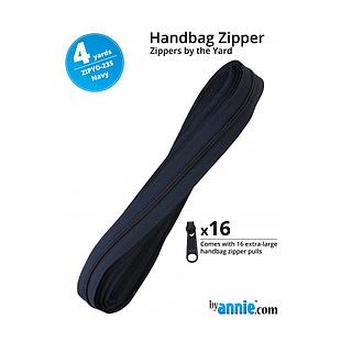 ZIPYD-235-NAVY, Zippers Navy, 4 yards (3,6 meter) 16 extra large zipper pulls ByAnnie