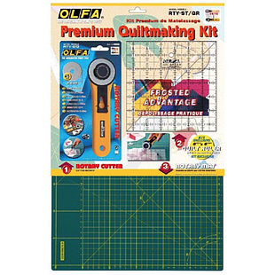 OLFA Premium Quiltmaker Kit (Rotary Cutter, CM, Inch Ruler and Cutting Mat)